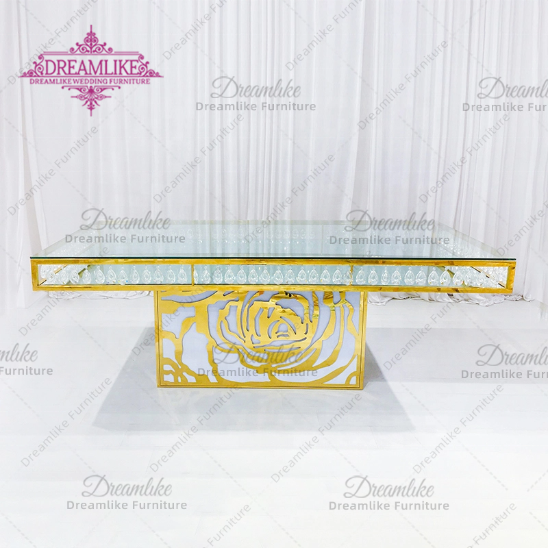 Table à manger de luxe en acier inoxydable doré pour les banquets de mariage, les restaurants et les hôtels