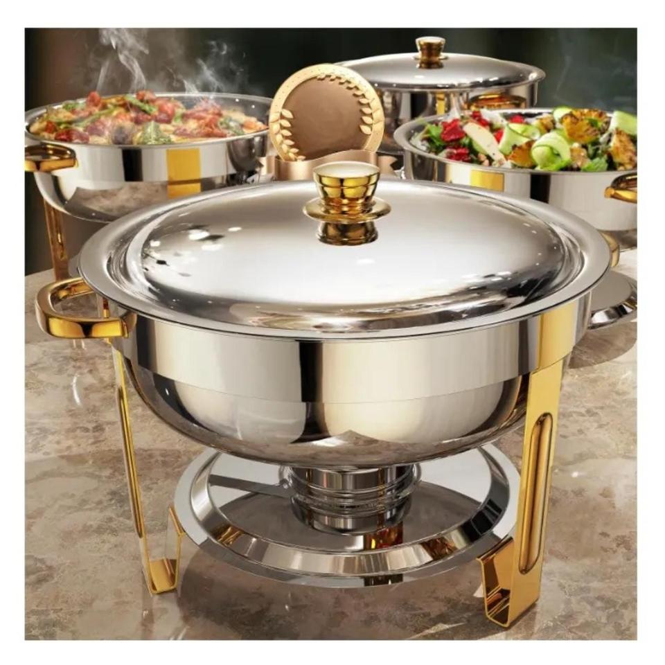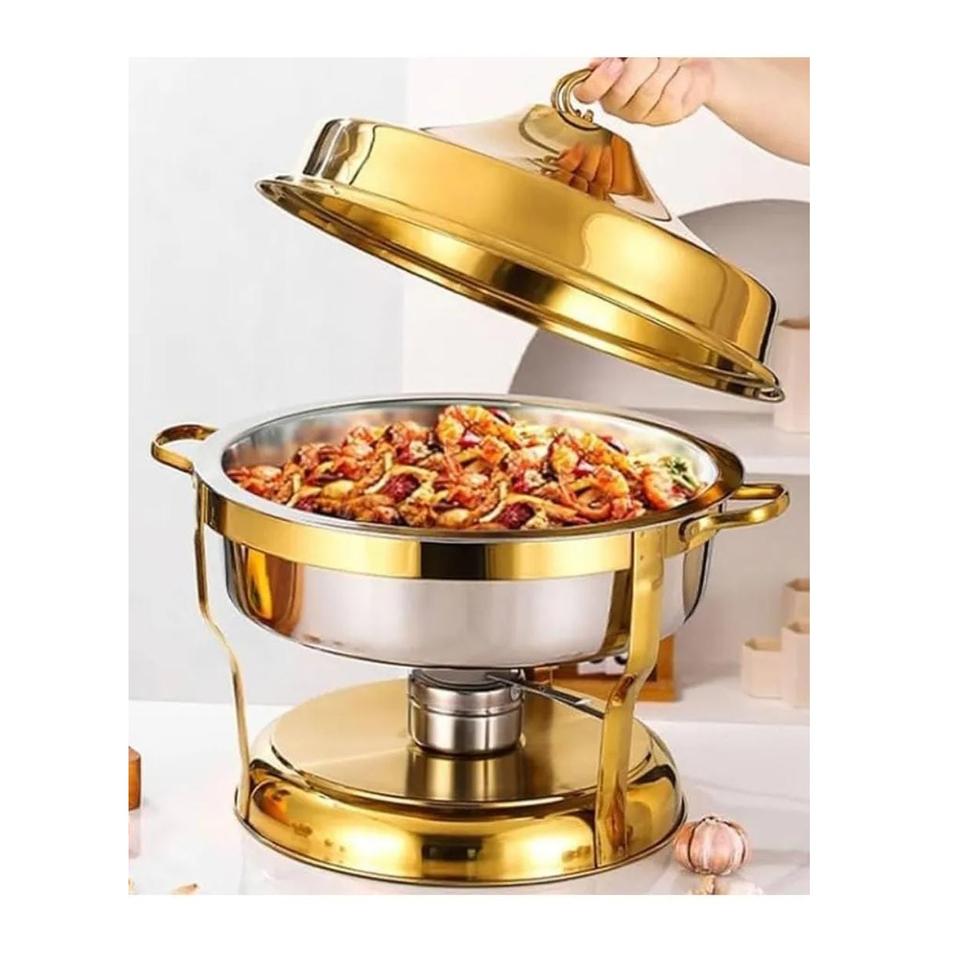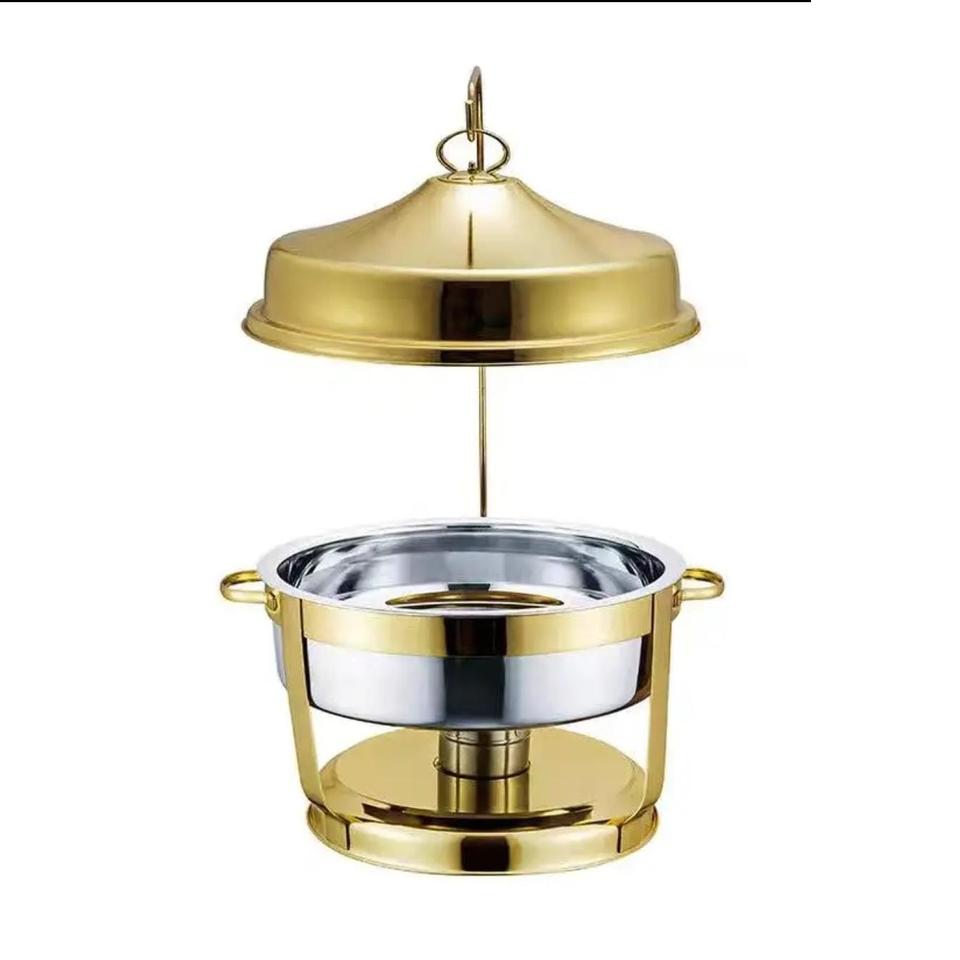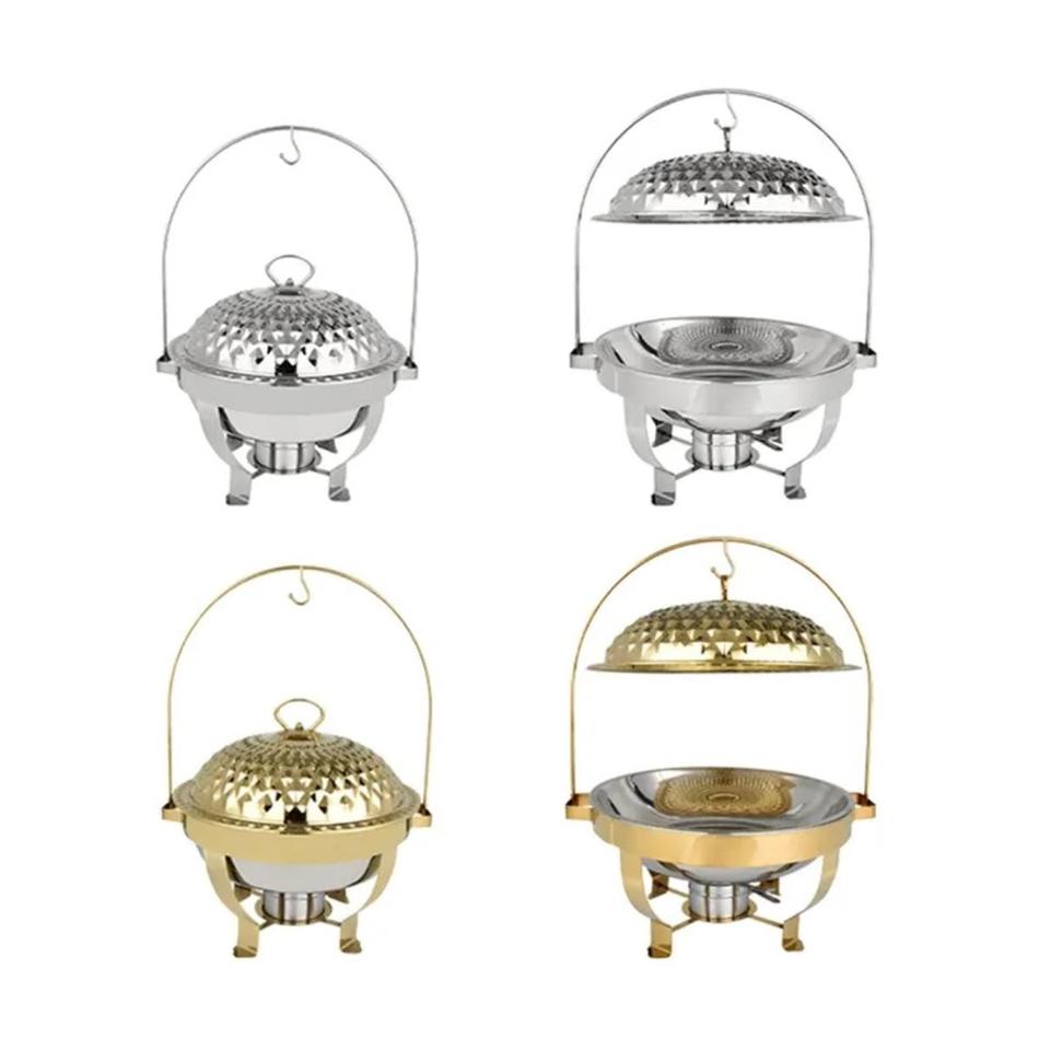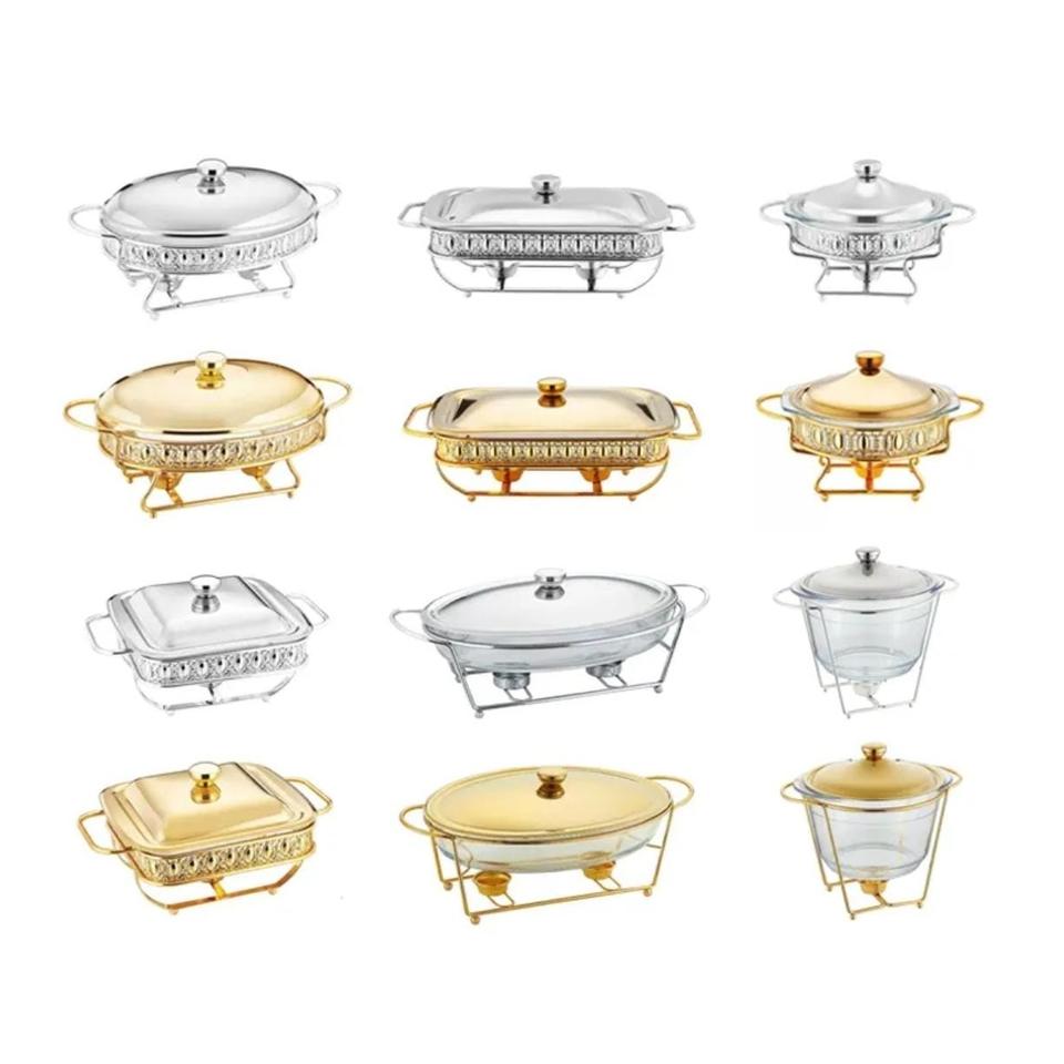 Plat de service rectangulaire de luxe en acier inoxydable doré avec couvercle suspendu, antiadhésif et compatible four, pour buffet et maintien au chaud des aliments en restauration hôtelière