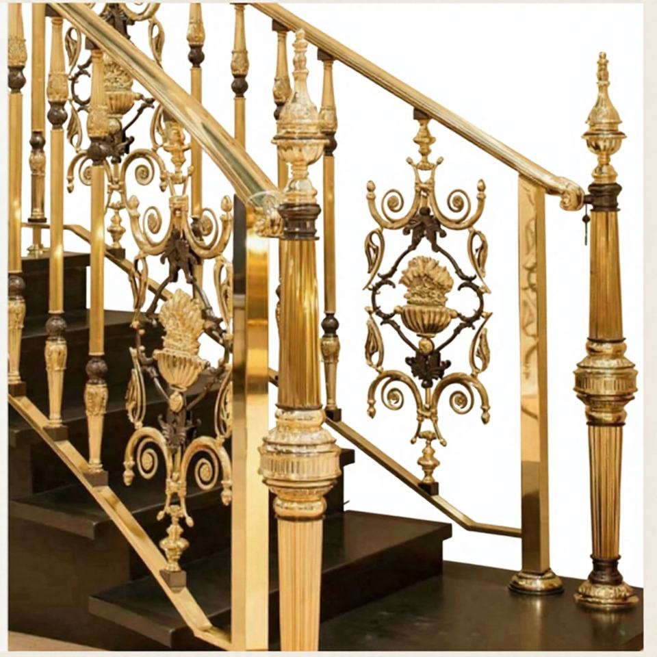 Rampe d'escalier de luxe en acier inoxydable doré, balustrade décorative intérieure en métal, main courante pour villa, design d'escalier