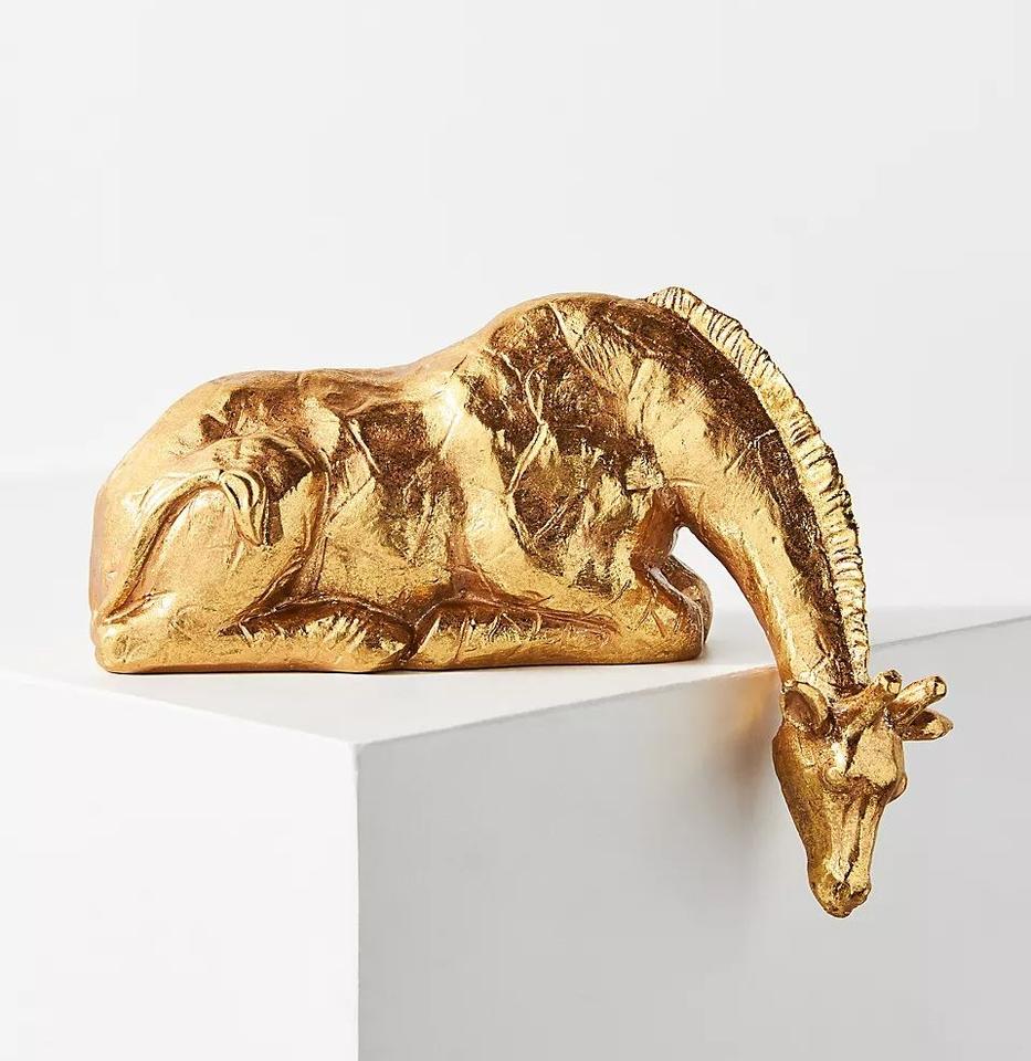 Luxury Golden Finish Aluminium Giraffe Figurine Handcrafted Decorative Bird Sculpture for Home Office Shelf Table Decor Accent