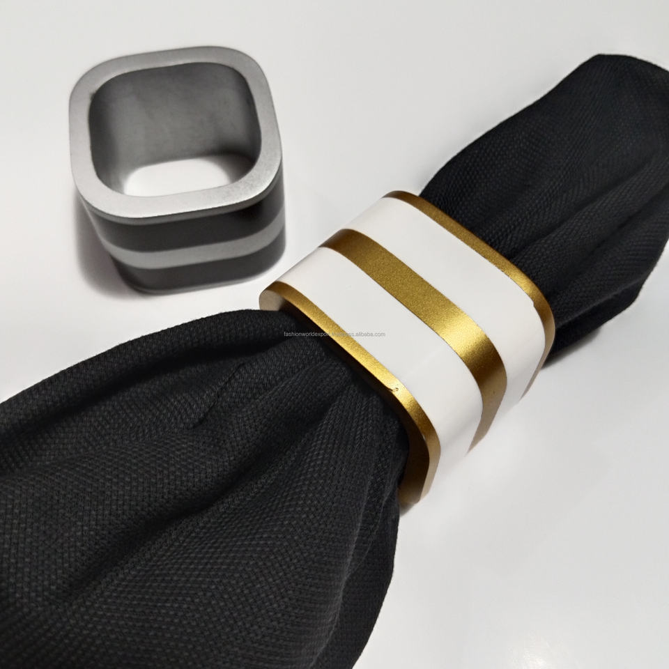 Anneaux de serviette de luxe en résine dorée et noire carrés avec bords ronds pour la décoration de table de mariage et les accessoires en Inde