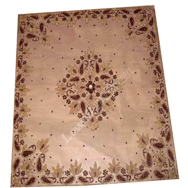 Nappe transparente élégante de couverture de table en filet brodé à la main de luxe avec une broderie artisanale complexe