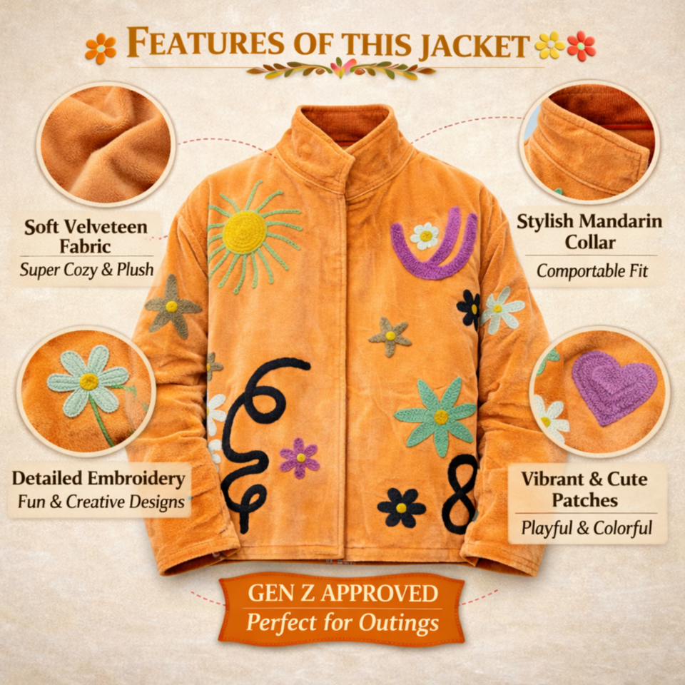 Veste en velours brodée à la main de luxe, style bohème, col montant, cadeau unique pour festival