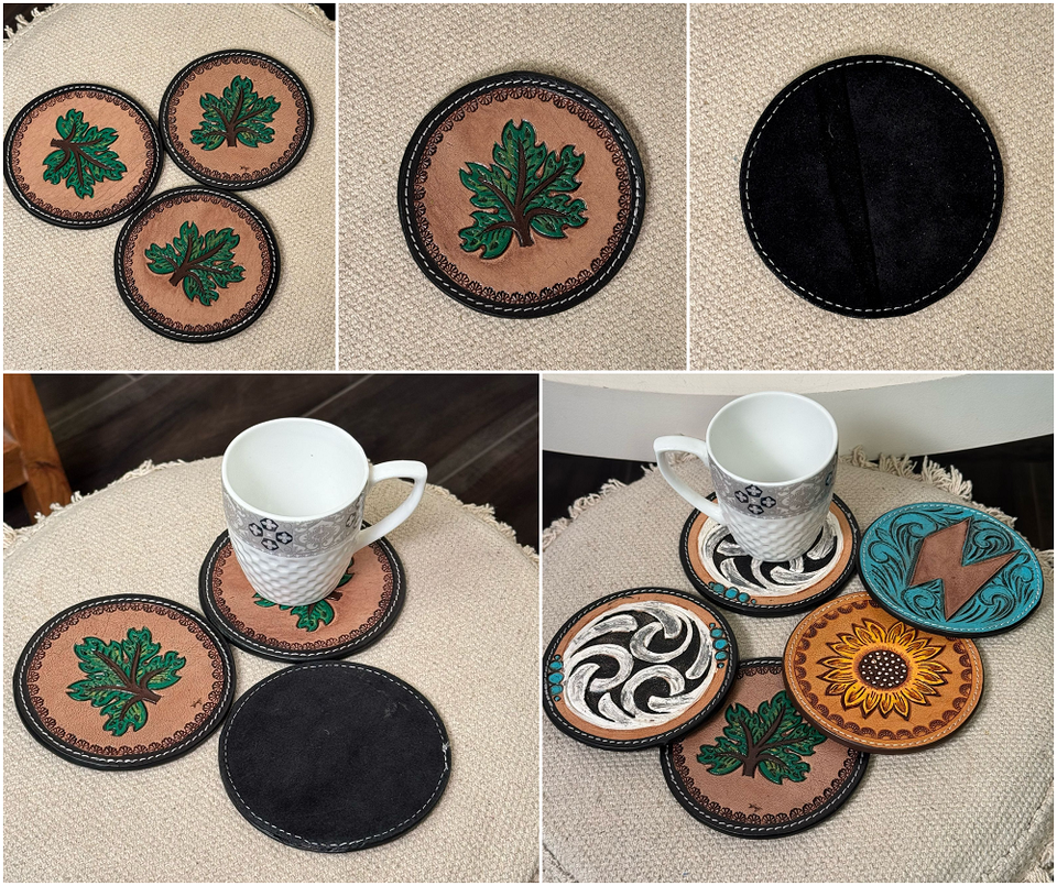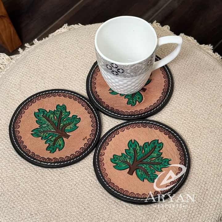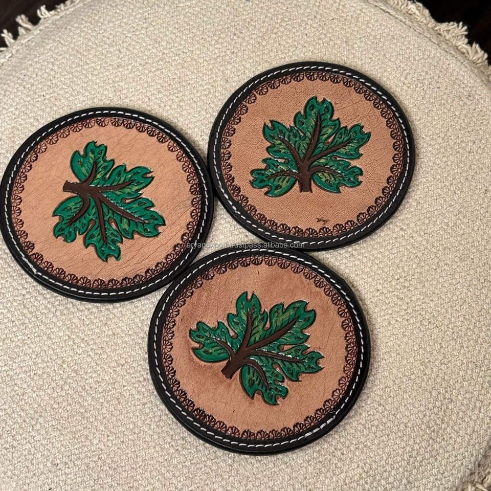 Product name:Hand Tooled Leather Coaster Set