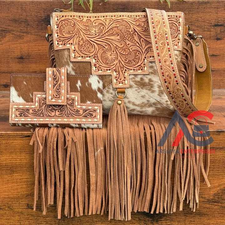 Product name:Hand Tooled Leather Fringe Bag & Cowhide Bifold Wallet