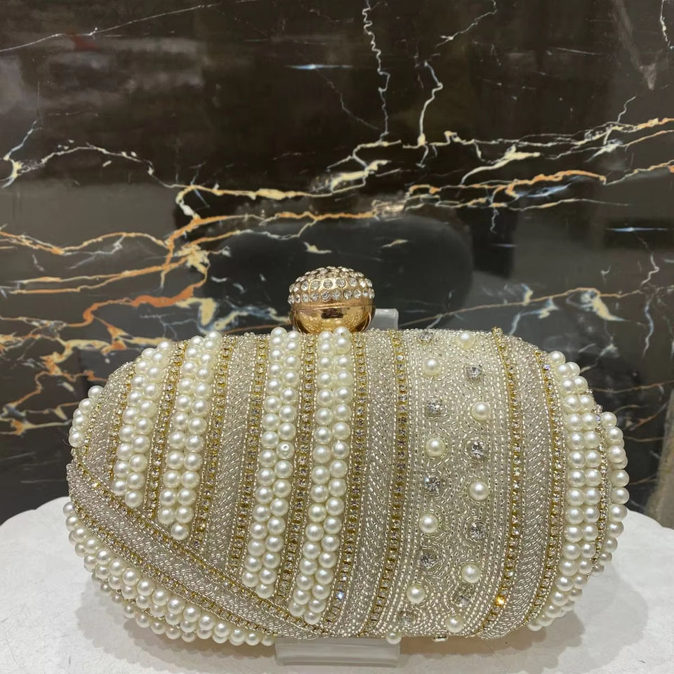 Luxury Handcrafted Beaded Clutch Bag with Elegant Embroidery Pearl and Tassel Decoration for Weddings Parties Evening Wear