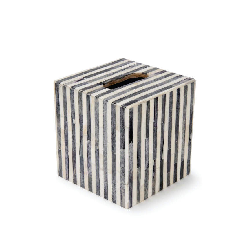 Boîte à mouchoirs en os incrusté de luxe, artisanale, à rayures / Porte-mouchoirs carré moderne noir et blanc pour la maison et l'hôtel, boîte à serviettes
