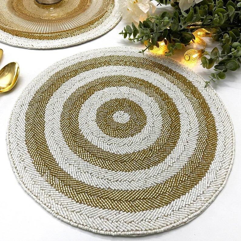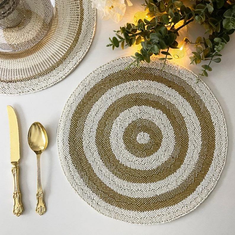 Luxury Handcrafted Embroidery Black and White Round Beaded Placemat and Table Runner for Dining Wedding Home Decor