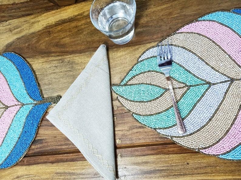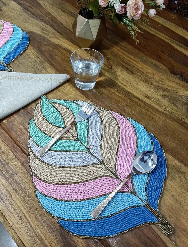 Luxury Handcrafted Glass Beads Eco-Friendly Rectangle Placemats for Dining Table 14 Inch Gathering Occasional Decoration