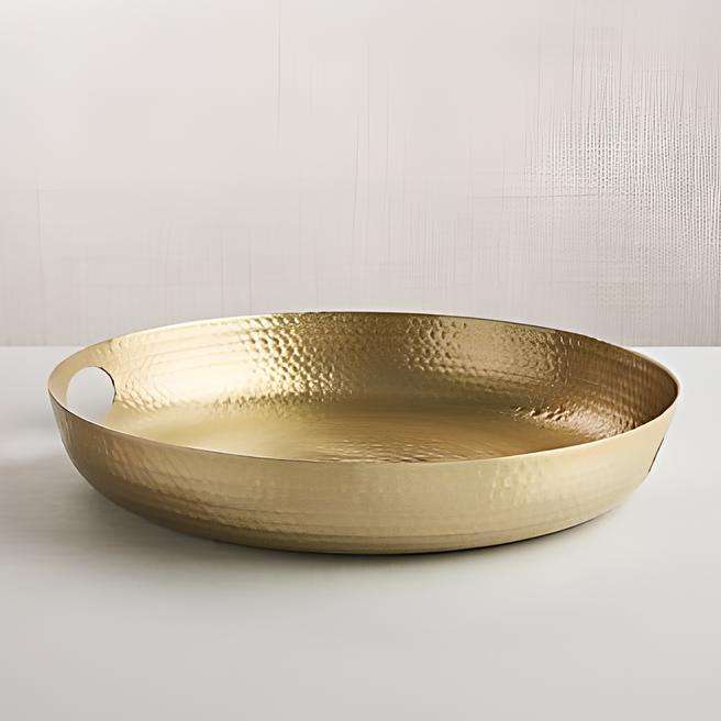 Plateau de service rectangulaire en laiton doré artisanal de luxe pour hôtel, restaurant, maison, décoration d'hôtel, présentoir, centre de table