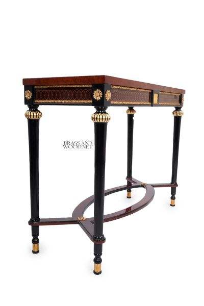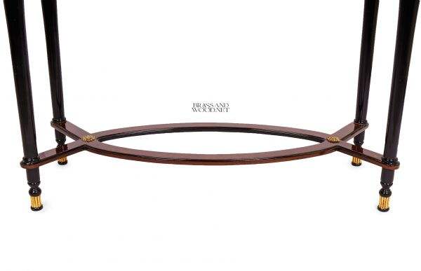 Table console rectangulaire de luxe fabriquée à la main avec des détails en laiton décoratif et un cadre de support incurvé