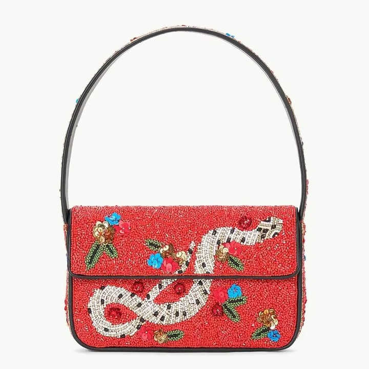 Collection de Sacs Perlés Faits Main de Luxe – Sacs à Bandoulière Carrés à Perles Florales, Sacs de Soirée Vintage Rouges Sous le Bras pour Femmes, Élégants et Tendance
