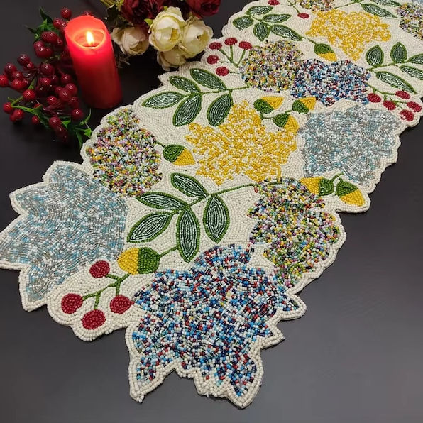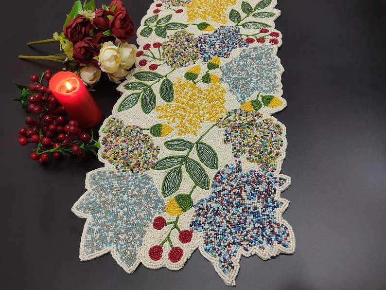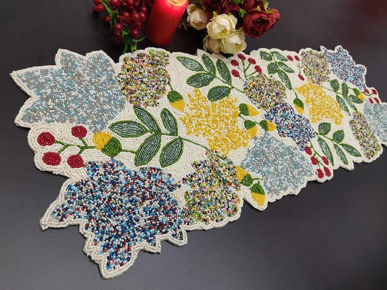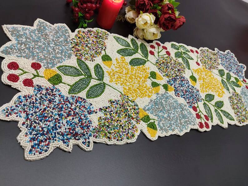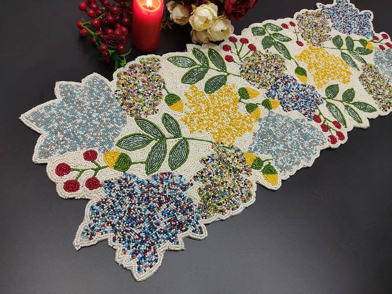 Chemin de table floral perlé fait à la main de luxe pièce maîtresse multicolore pour décor d'Halloween de table à manger