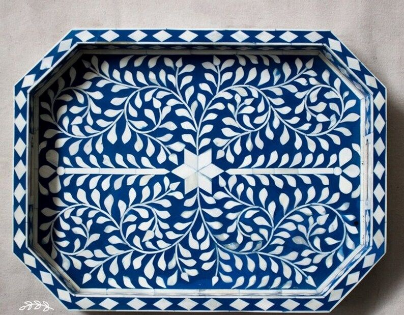 Plateau de service en os incrusté fait main de luxe avec motif floral | Plateau de table basse décoratif pour la décoration de la maison et de l'hôtel