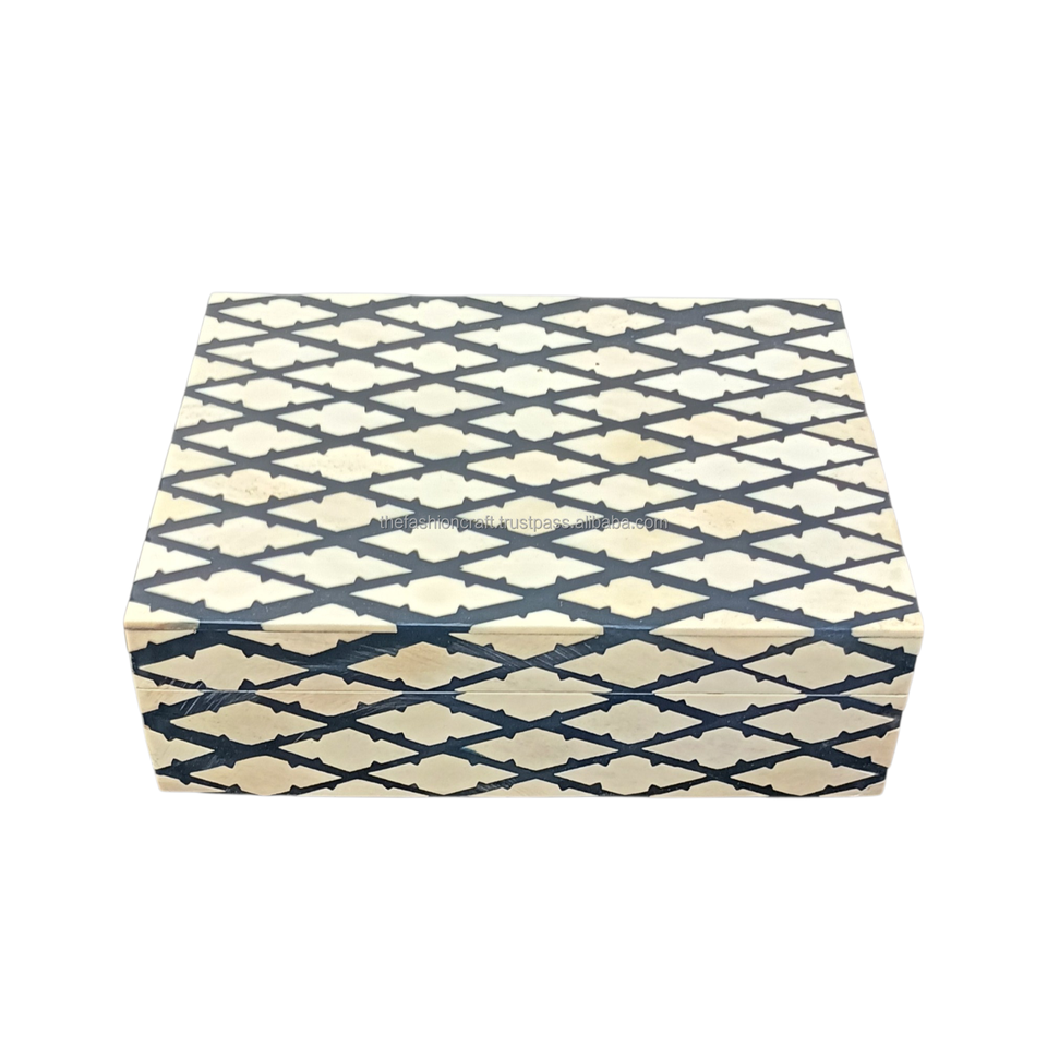 Boîte de rangement moderne de luxe faite à la main avec incrustations en os, écologique, organisateur de bijoux décoratif pour la décoration de salon et de la maison