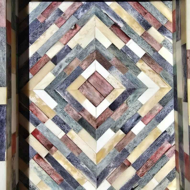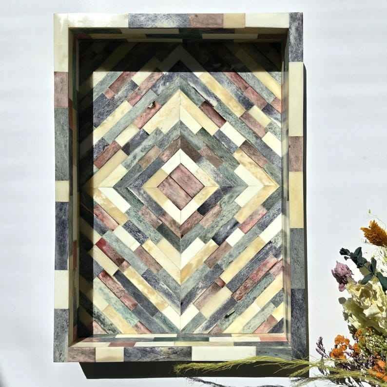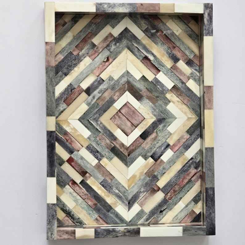 Plateau de luxe fait main en os incrusté pour le service, la décoration intérieure, la table basse, la salle à manger, cadeau, écologique, qualité supérieure