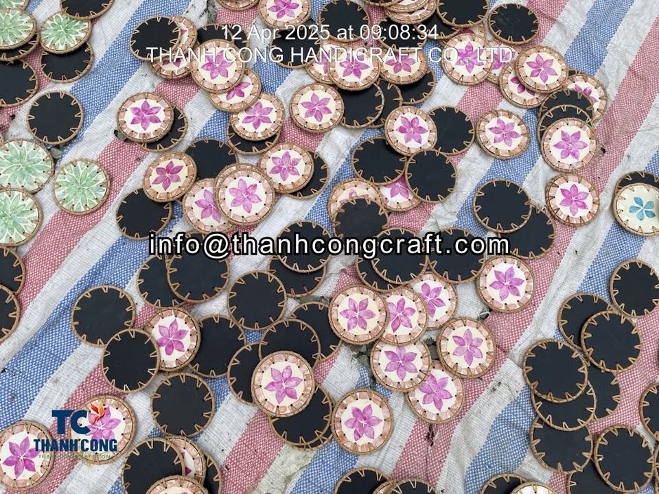 Ensemble de sous-verres de luxe fait à la main avec cadre en coquillage et rotin pour la décoration intérieure du Moyen-Orient Boutique Hôtels et cadeaux du Ramadan