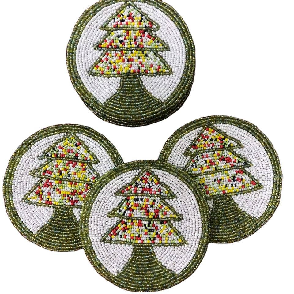 Sous-verre de Noël en perles de rocaille fait main, design personnalisable, style bohème de haute qualité pour thé et café