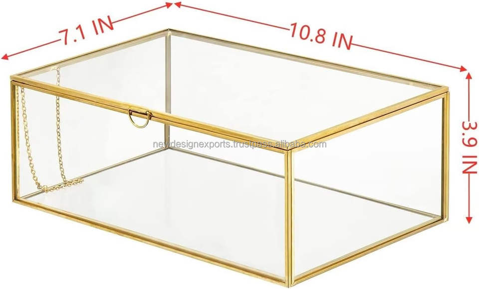Boîte à bijoux en verre personnalisable faite à la main de luxe avec garniture en laiton Design vintage classique pour le stockage des femmes et des accessoires de mariage