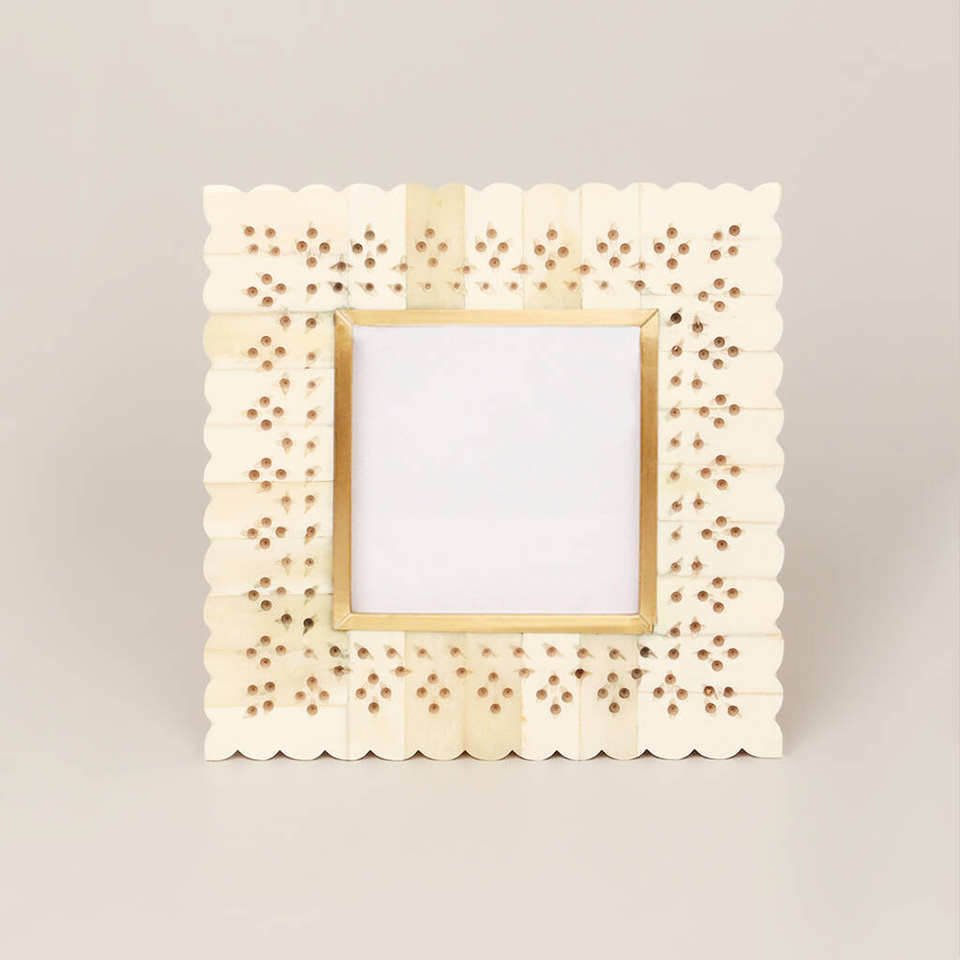 Cadre photo décoratif de luxe fait main en os incrusté avec motif floral complexe, insertion facile des photos pour usage personnel et commercial
