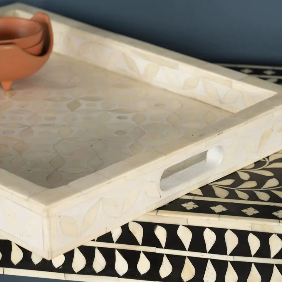 Plateau Feng Shui de Luxe Fait Main Écologique avec Incrustations en Os – Design Décoratif Élégant, Qualité Supérieure pour la Maison et la Cuisine (Idéal pour Servir)