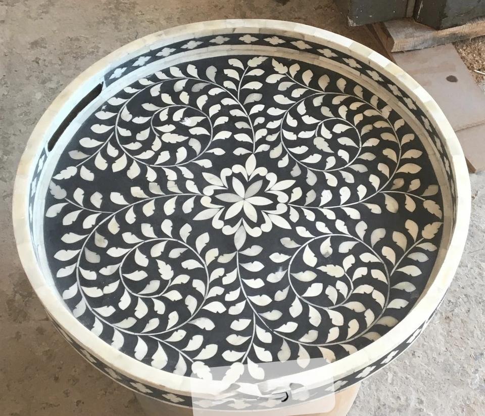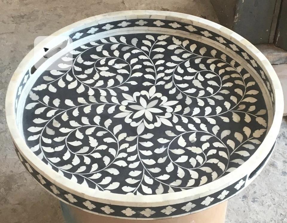 Plateau Feng Shui de Luxe Fait Main Écologique avec Incrustations en Os – Design Décoratif Élégant, Qualité Supérieure pour la Maison et la Cuisine (Idéal pour Servir)
