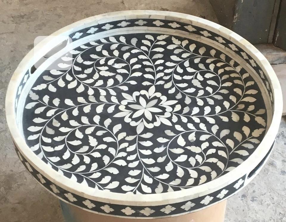 Plateau Feng Shui de Luxe Fait Main Écologique avec Incrustations en Os – Design Décoratif Élégant, Qualité Supérieure pour la Maison et la Cuisine (Idéal pour Servir)