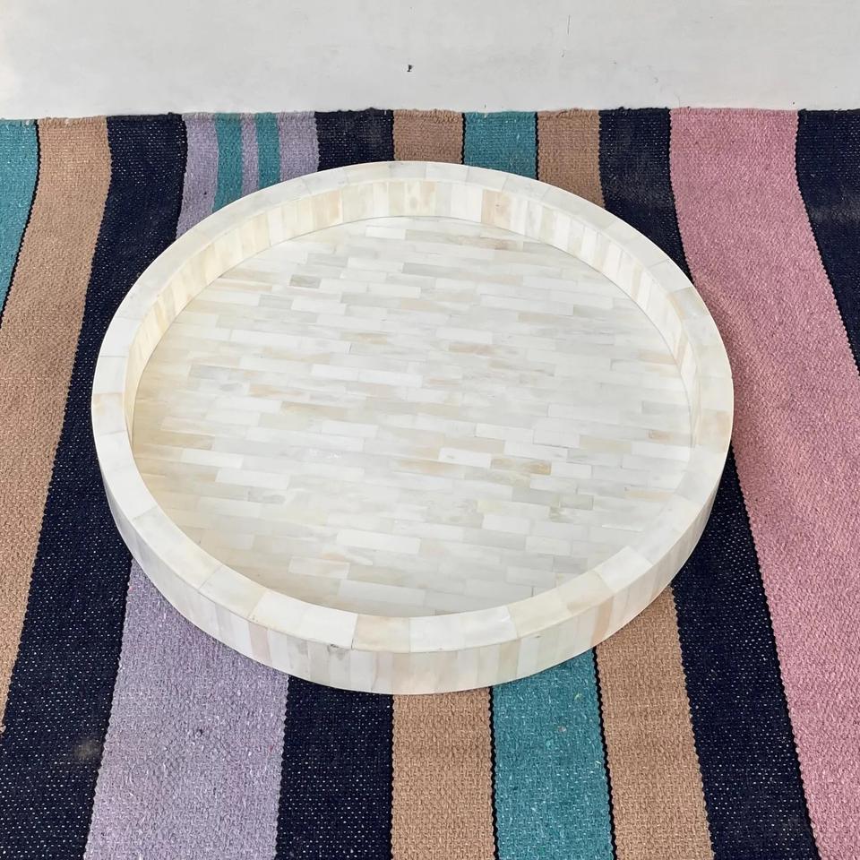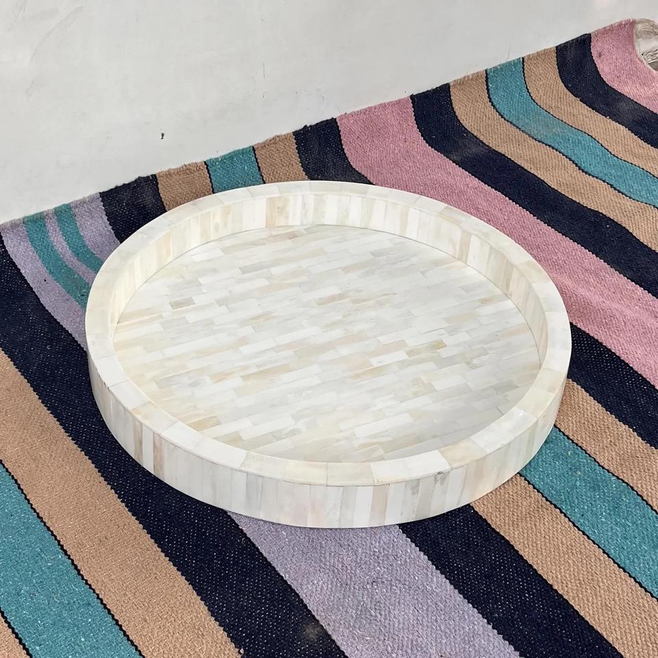 Plateau Feng Shui de Luxe Fait Main Écologique avec Incrustations en Os – Design Décoratif Élégant, Qualité Supérieure pour la Maison et la Cuisine (Idéal pour Servir)