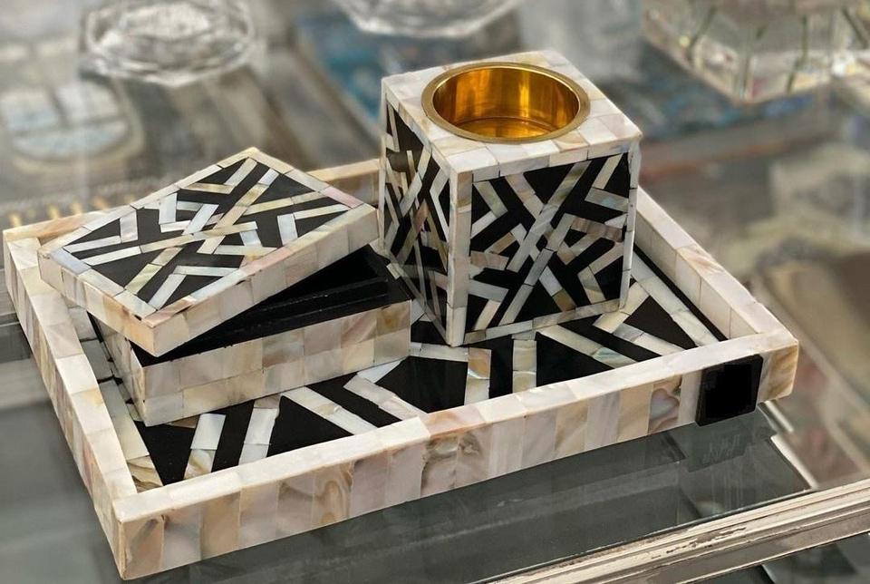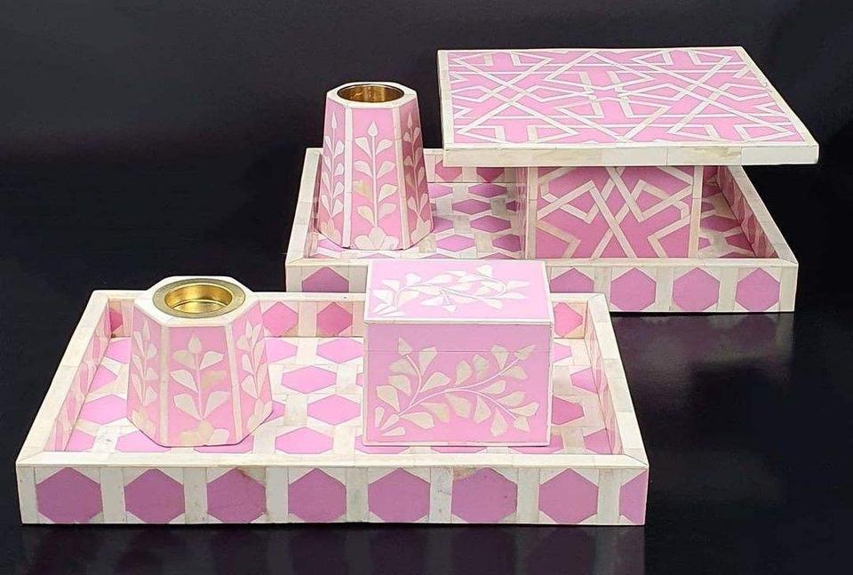 Plateau Feng Shui de Luxe Fait Main Écologique avec Incrustations en Os – Design Décoratif Élégant, Qualité Supérieure pour la Maison et la Cuisine (Idéal pour Servir)