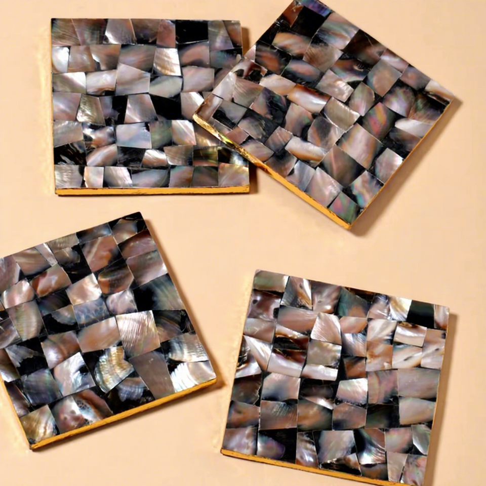 Ensemble de sous-verres de luxe faits à la main en nacre, sous-verres carrés multicolores 4x4 pouces pour la décoration intérieure par Tradebyd