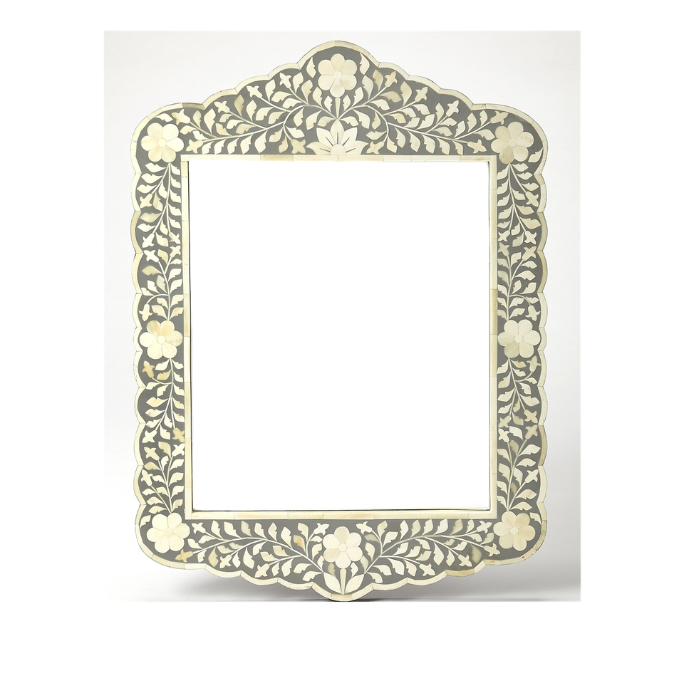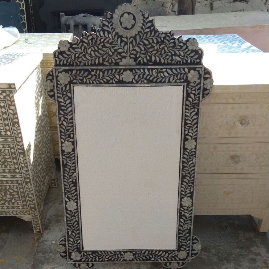 Miroir mural décoratif moderne de luxe fait à la main avec motifs floraux et incrustations en os, fabriqué en Inde au prix d'usine
