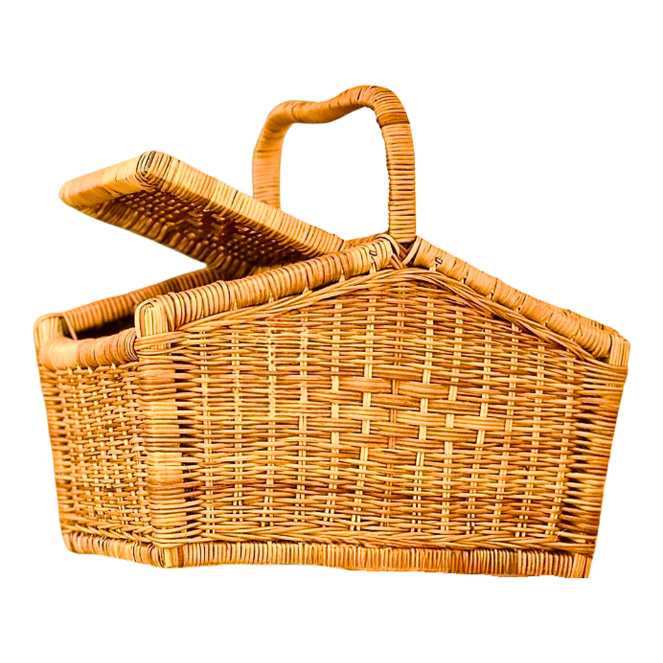 Panier de pique-nique en rotin de luxe fait à la main avec couvercle du Vietnam grand panier de récolte en osier léger excursions d'une journée