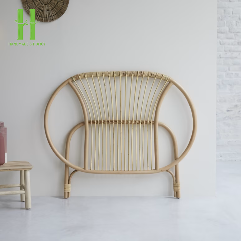 Lit mural moderne du milieu du siècle, fait main de luxe, avec rotin écologique, taille et couleur personnalisables, directement de l'usine au Vietnam