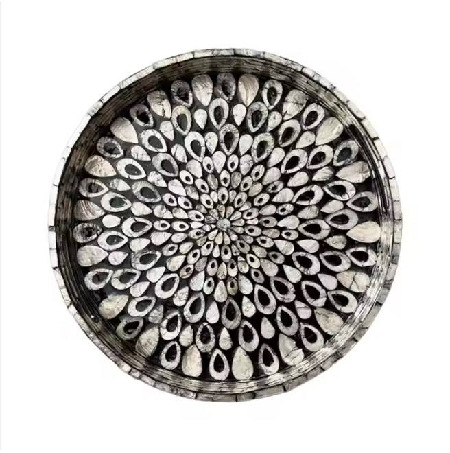 Plateau de service rustique en nacre de luxe fait à la main plateau de lit de petit déjeuner avec poignée en bois pour servir des aliments