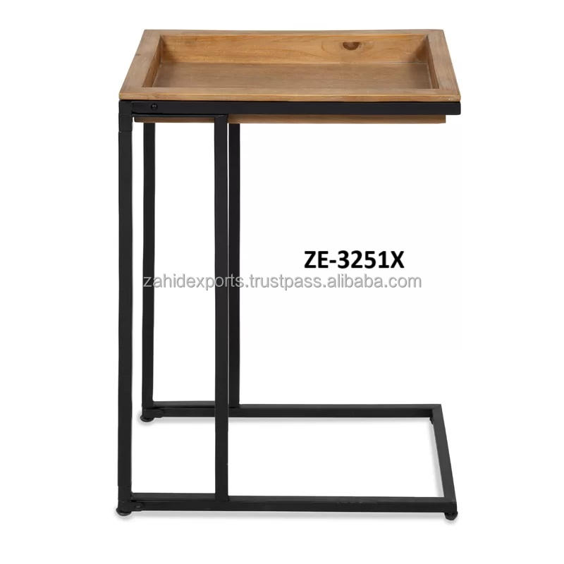 Table basse de luxe artisanale écologique en fer avec plateau en bois carré, design moderne, hauteur réglable, rangement, grande taille pour salon