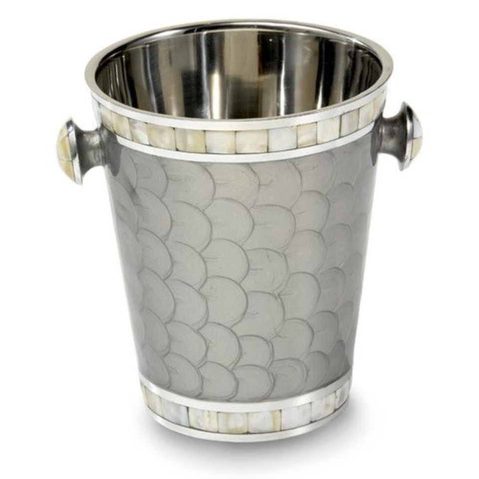 Seau à glace de luxe fait main en acier inoxydable, refroidisseur à vin avec incrustation de nacre, finition platine, articles de bar en métal pour table