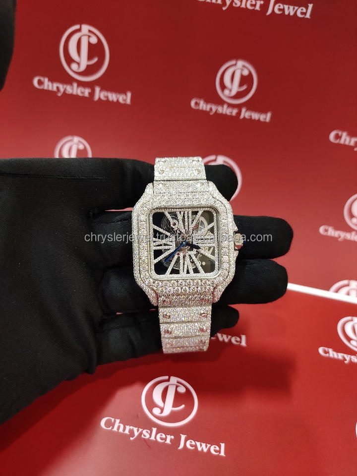 Montre de luxe faite à la main avec clous, mouvement automatique, en acier inoxydable, haute qualité, carrée, sertie de diamants Moissanite VVS, verre 40mm