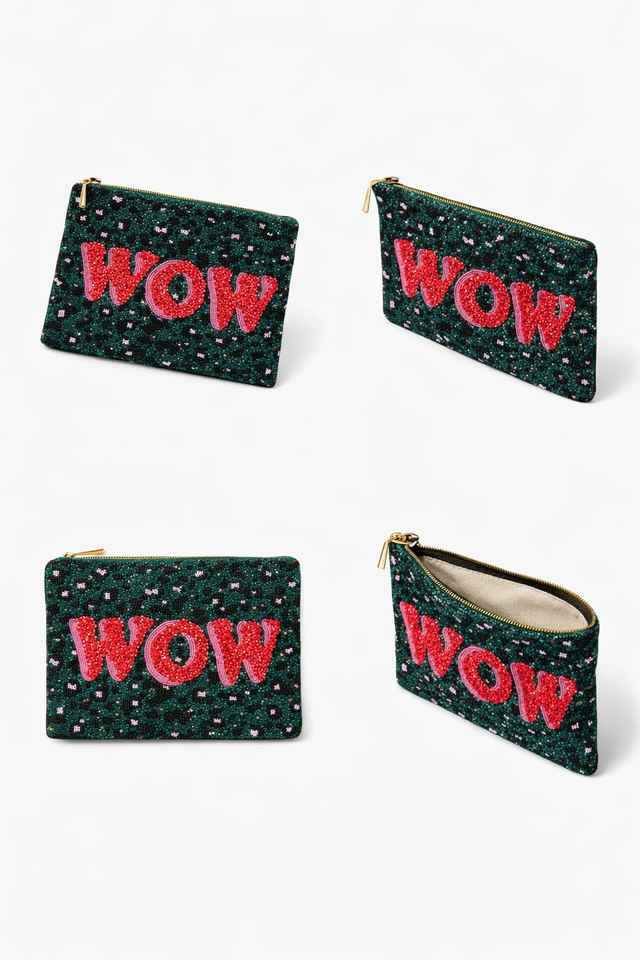 Pochette WOW de luxe artisanale en Tyvek à fermeture ouverte et ornée de perles pour femme, porte-monnaie élégant, mini portefeuille tendance et original