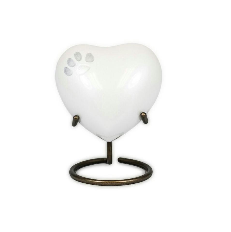 Luxury Heart-Shaped Brass Pet Cremation Urn Paw Print Memorial Keepsake Bulk Supply for Dog Cat Ashes for Pet Loss Retailers.