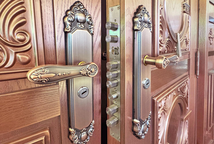 Villa robuste de luxe Porte d'entrée avant étanche au soleil Portes de sécurité en métal et cuivre Poteau de tête de porte extérieure de haute qualité pour l'extérieur