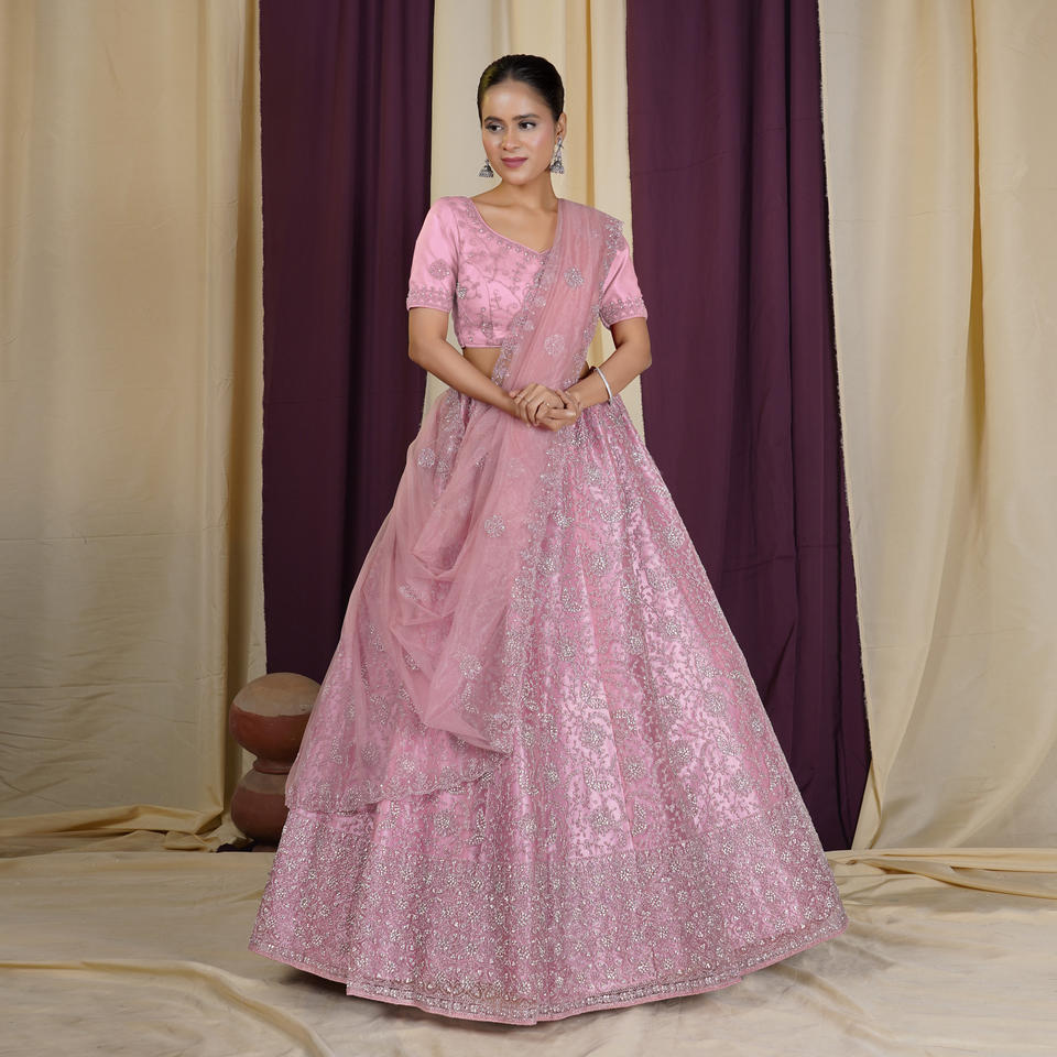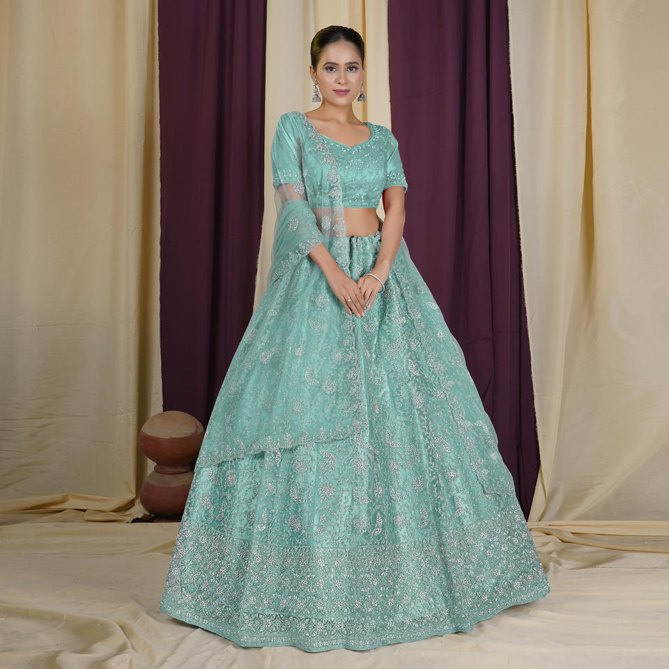 Luxury Heavy Embroidered Net Floor-Length Wrinkle-Free Lehenga Choli Matching Dupatta Wedding Prom Beach Diwali Graduation