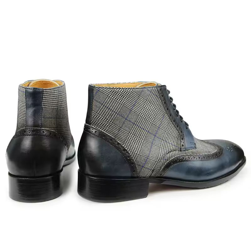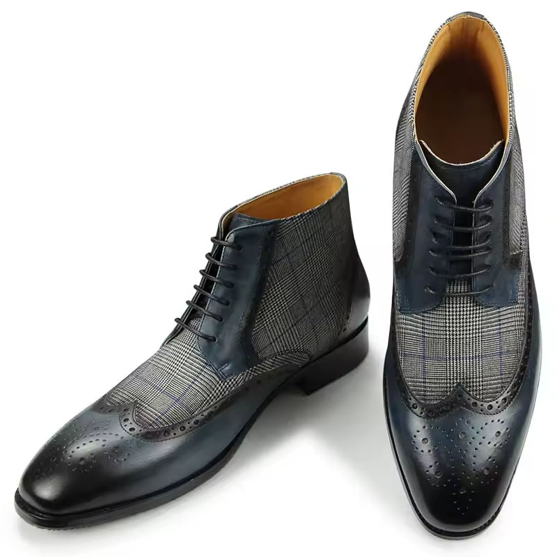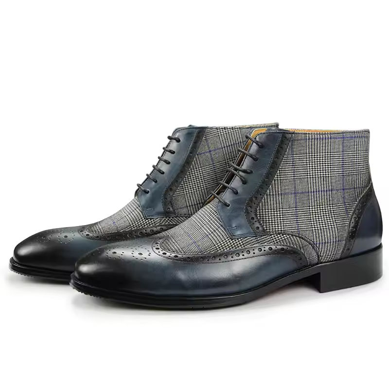 Luxury High Ankle Men's Boots for Engraved Rubber Upper Waterproof Lace-Up All Seasons Fashion Show Career Boots Factory