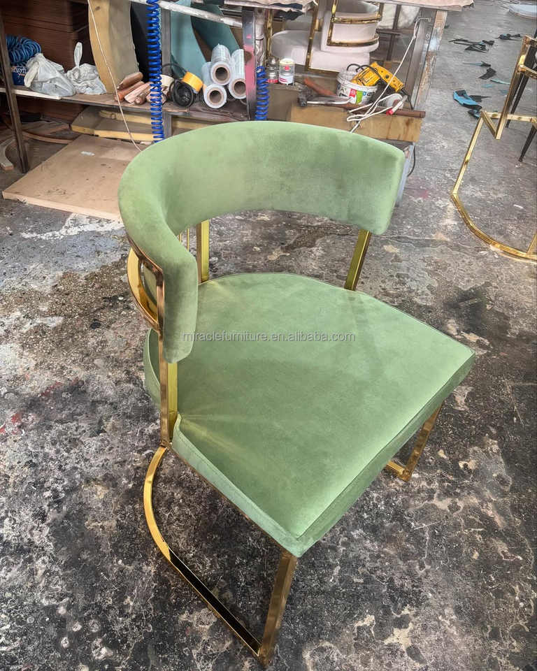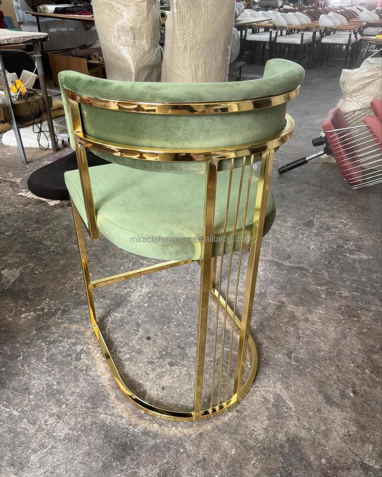 Chaise haute de luxe en acier inoxydable doré, tabouret de bar en velours pour hôtel, maison, pub, mariage