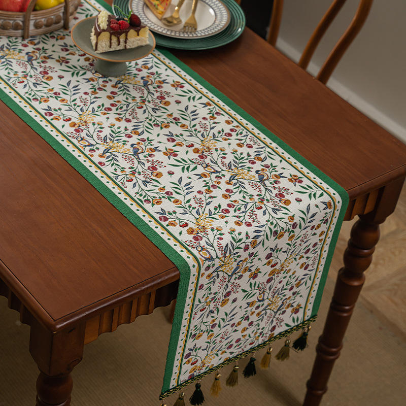 Tissu tissé floral de chemin de table de Style campagnard américain haut de gamme de luxe pour la décoration intérieure longue nappe pour Table basse ou TV
