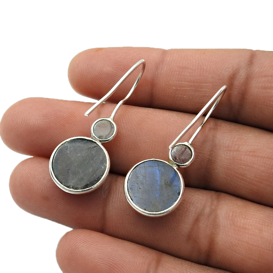 Luxe haut de gamme Design 925 argent Sterling naturel Labradorite pierres précieuses classique crochet boucles d'oreilles pour femme et filles bohème bijoux