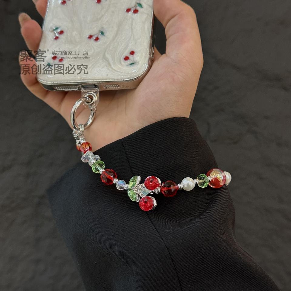 Luxury High-End Red Crystal Bead Bracelet Wrist Hanging Rope Car Keychain Companion for Phone Case High-End Rubber Key Chains