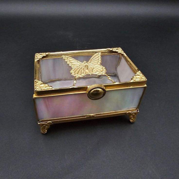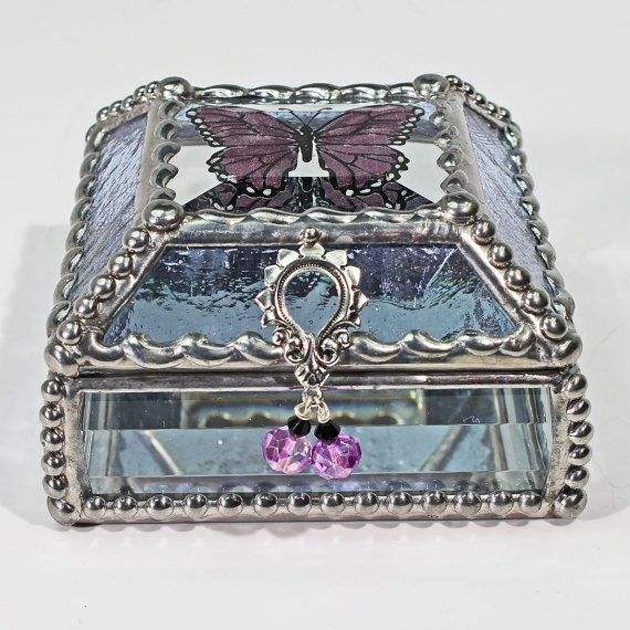 Boîte à bijoux de luxe en verre teinté bleu personnalisée de haute qualité avec fermoir papillon en métal, faite à la main, pour rangement de bibelots en verre coloré