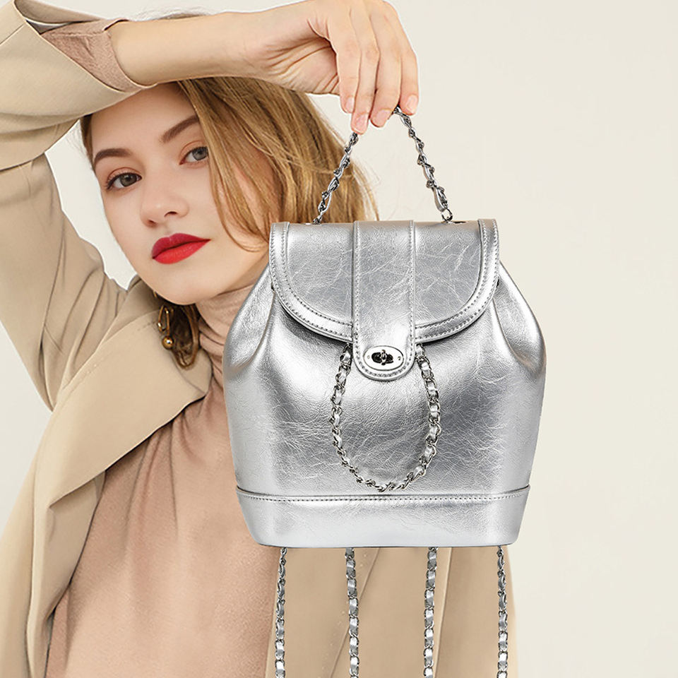 Sac à dos mini de luxe en cuir véritable souple de haute qualité pour femme, idéal pour les loisirs et les voyages, avec chaîne