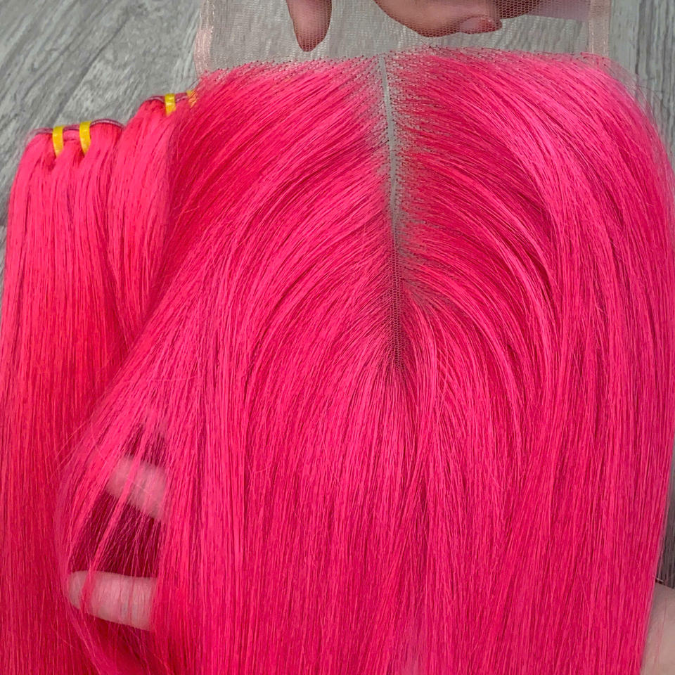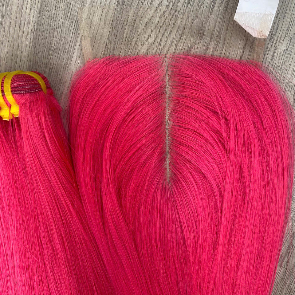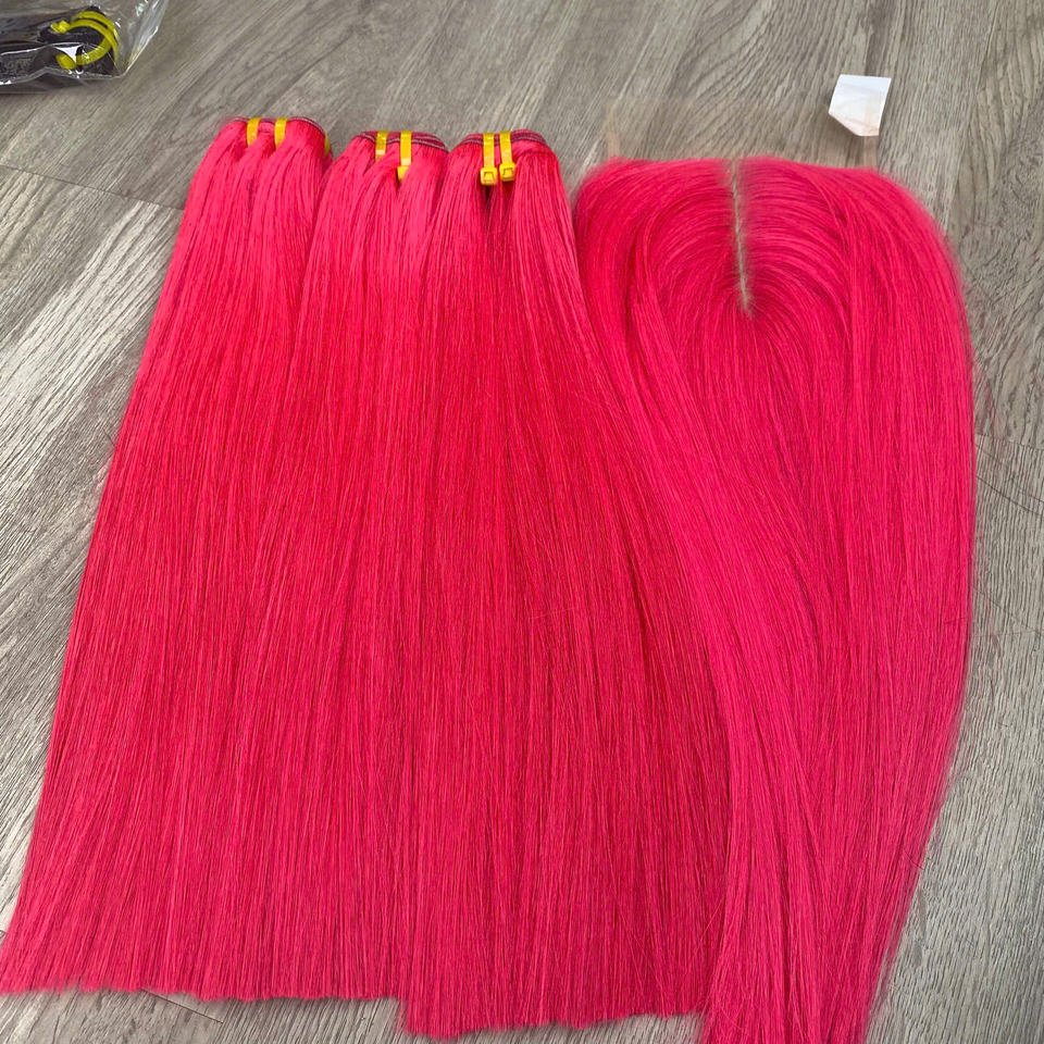 Extensions de cheveux vietnamiennes de luxe de haute qualité couleur rose vif pour les femmes prix de gros usine tendance couleur cheveux