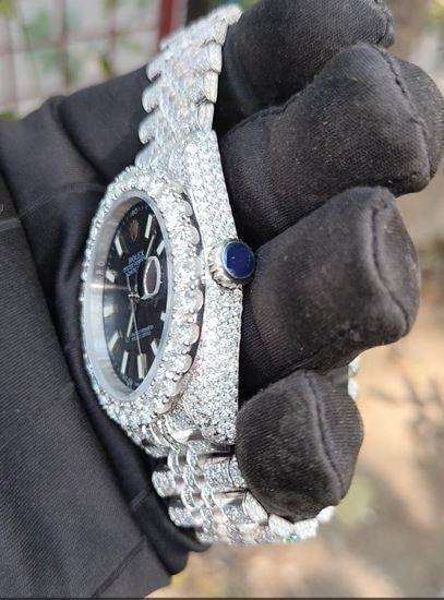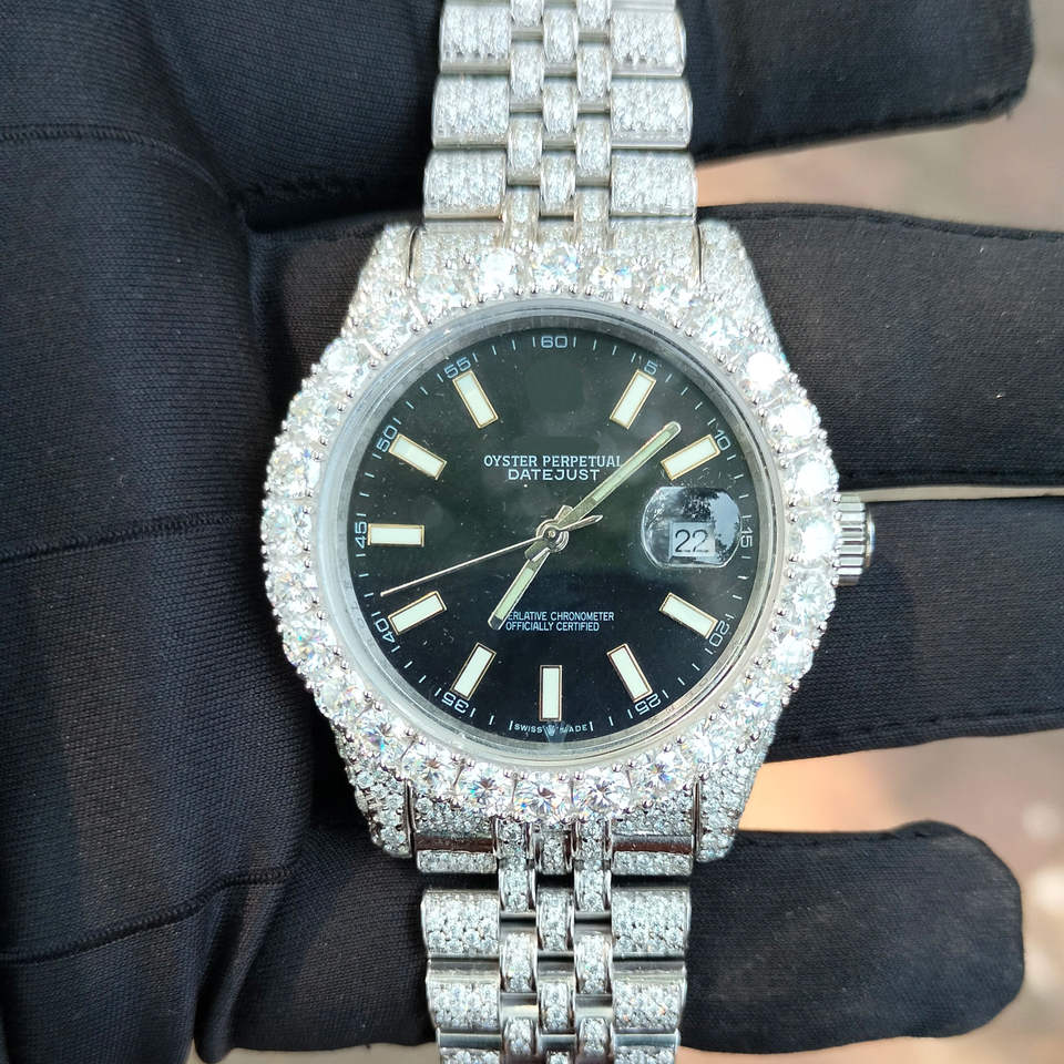 Montre de laboratoire noire en diamant de haute qualité personnalisée Hip Hop de luxe Vvs Iced Out BlingCubic Zirconia Montre mécanique en moissanite pour hommes